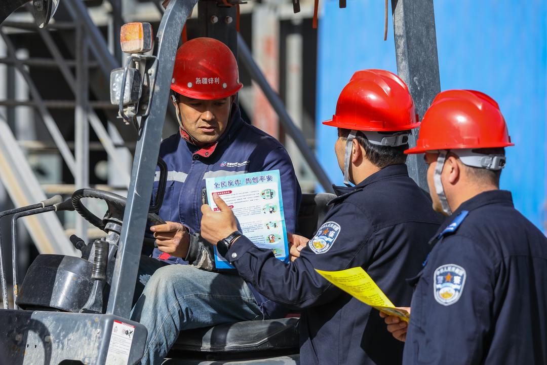 共工新闻社11月11日电(程超、徐贤华)随着消费旺季临近,各类涉企电信网络诈骗风险有所抬头,安全生产隐患也需重点防范。为从源头化解安全风险、筑牢企业安全防线,11月10日,新疆维吾尔自治区叶城县乌夏巴什镇派出所组织民辅警深入辖区企业,开展“普法反诈+隐患排查”专项行动,以精准服务助力辖区法治环境与营商环境持续优化提升。