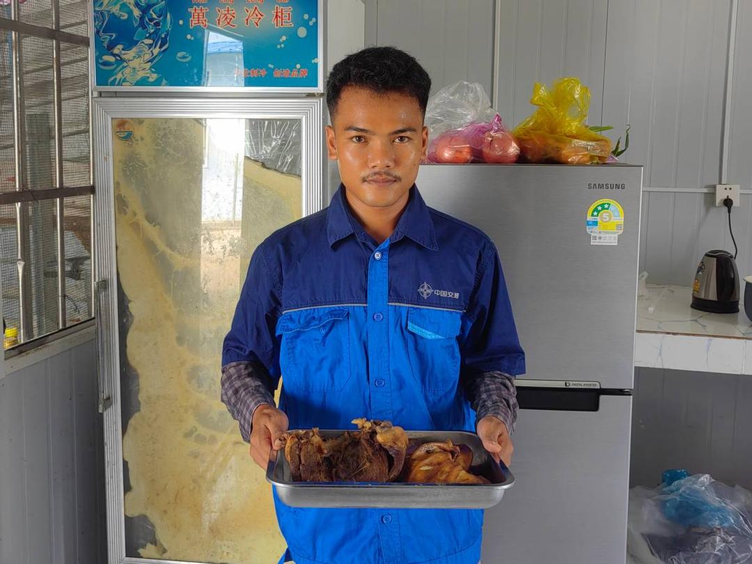 共工社金边12月27日电(通讯员:丁一)“能从保安变成大厨,还能让中国同事吃上家乡味,这都是中交一航局五公司给我的机会!”食堂里,属地大厨迪纳一边炒着湘菜一边介绍说。从懵懂的保安到技艺精湛的大厨,从爱情追光者到中柬情谊的纽带,迪纳的蜕变,正是中交一航局五公司“中柬一家人”海外发展理念的生动写照。