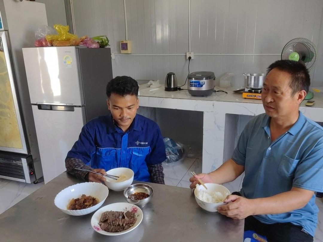 这份勤学苦练的坚持,让迪纳在两年内实现了职业的华丽跨越。2022年项目转场后,在原大厨的举荐下,他成功当选留守人员专属大厨。“以后项目的伙食就交给我,保证让大家吃得满意!”迪纳自信地向同事们承诺。为了兑现诺言,他更是加倍努力:向老彭请教烤鱼的腌制秘方、向老张学习山东大馒头的发酵技巧、跟着老赵钻研湘菜的香辣精髓。