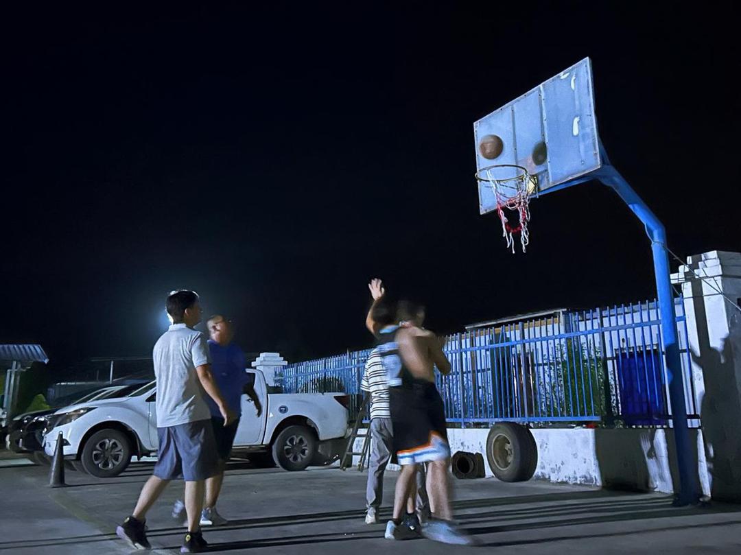 “传球!浩博,看这边!”豪杰跃起挥手,露出的额角渗着汗珠。浩博眼疾手快送出精准传球,这个动作和他白天指挥挖掘机时的利落手势如出一辙。罗哥接球、转身、起跳,篮球稳稳入网,这位经验丰富的技术员负责的竣工资料整理,刚通过监理验收,进球的欢呼声里,释放着连日伏案的疲惫。文彤跑得最快,抢下篮板就立刻推进,他整日待在试验室与试验块打交道,此时此刻是他最放松的样子。