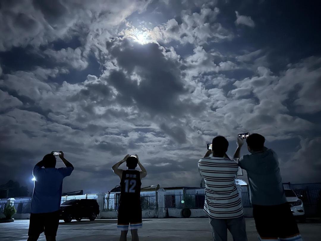 浩博调试着手机镜头:“调五十倍!这个焦距刚好能把圆月框在中间”罗哥凑过去看,手指点着屏幕:“你试试,把夜空当背景,构图肯定好看。”浩博按他说的调整,按下快门,笑着展示:“你看,月亮在深蓝色的夜空里,简直像画一样。