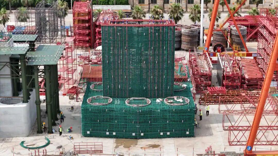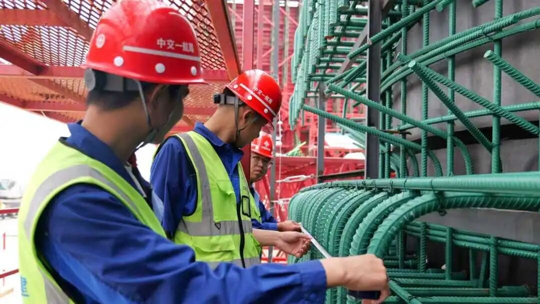 项目团队还在环氧层表面增加磨砂颗粒,“既隔离了海水,又变相增加了握裹力。”刘俊龙指着刚“出炉”的钢筋说,“这就像穿了防水又防滑的战靴,才能打硬仗。”现场绑扎还配合专用劲性骨架,工人按定位装置逐根安放钢筋,误差须控制在毫米级。