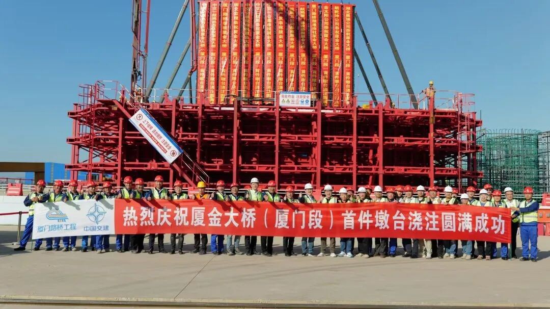 在厦门湾的晨曦中,中交一航局厦金大桥(厦门段)项目墩台预制厂一片繁忙景象,机器的轰鸣声打破了清晨的宁静。随着最后一方混凝土缓缓注入模内,首件墩台的浇注工作顺利完成,现场喇叭里传来项目经理马冲激动的声音:“首件浇注成功,大家辛苦了!”