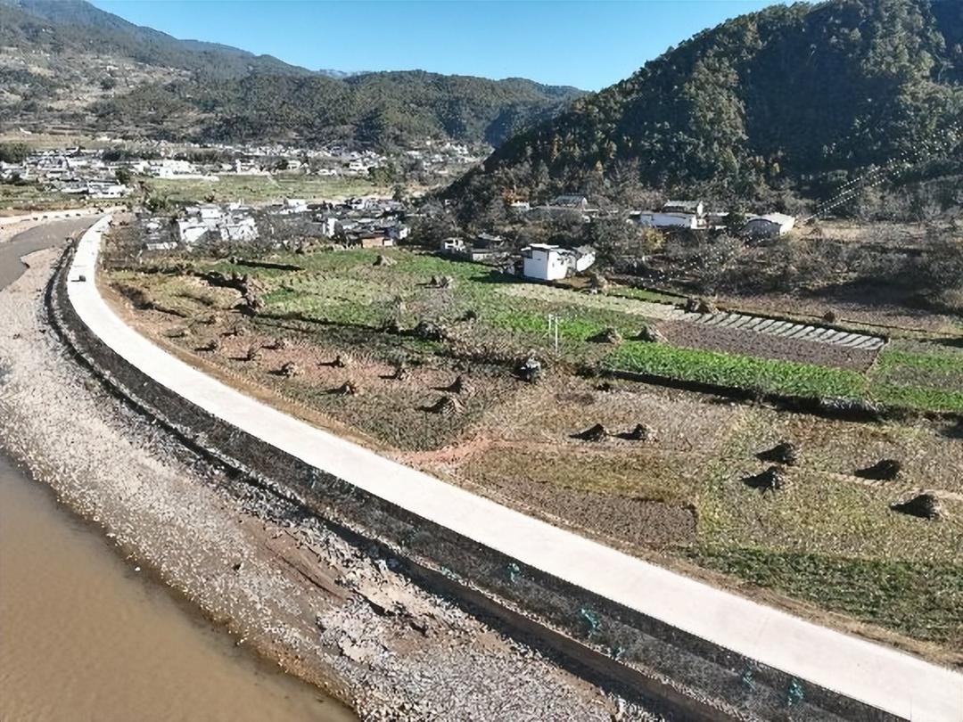 这正是中交一航局承建的黑潓江洱源段治理工程(一期)的生动写照。沿岸凤鸣村村民感慨道:“从前汛期江水漫滩淹庄稼,如今堤岸筑好,心里踏实多了。”本次治理以“系统修复、生态优先”为核心理念,完成32.92公里河道全段治理与43.38公里堤防修筑,构建起“防洪+生态+民生”立体体系:采用埋石混凝土护脚、格宾石笼护坡搭配智能排涝口,将防洪标准提升至十年一遇;清淤时注重底泥生态保护,播撒本土草种形成复合生态带,水体自净能力显著增强;防洪堤同步升级为滨水步道,往昔荒滩化作村民休憩耕作的“生态福地”。